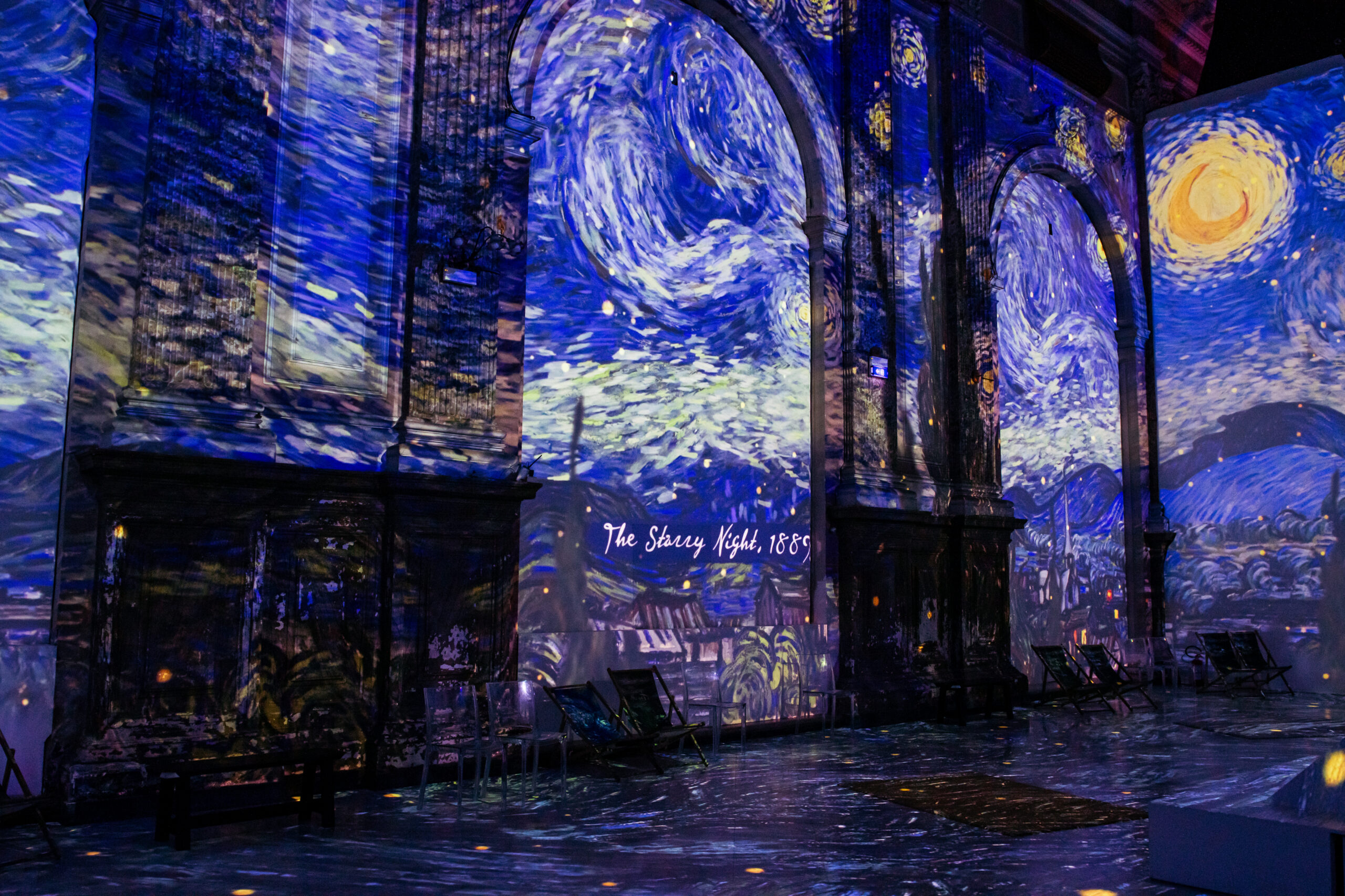 Projections of Vincent van Gogh’s “Starry Night” surrounded visitors during the exhibition. (Photo Courtesy Exhibition Hub/Fever)