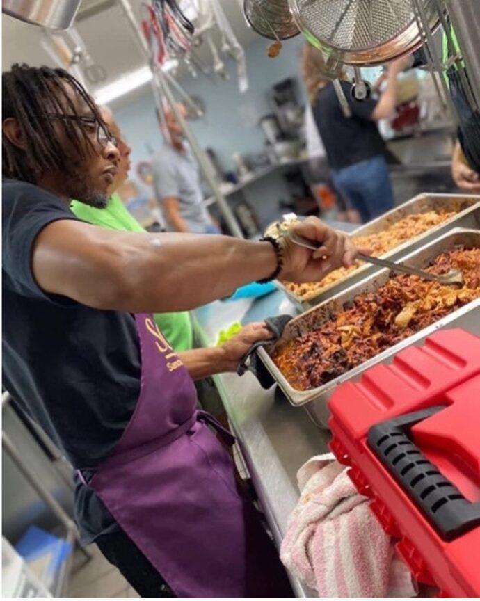 Marques Clark prepared ingredients before a community supper event in St. Petersburg. (Photo courtesy of Marques Clark)