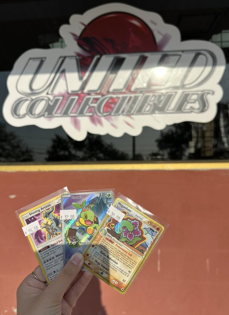 Another local card shop, United Collectibles, off of 62nd Ave. N., specializes in a handful of different trading card games. Most notable are their cases of valuable Pokémon cards, selling at a variety of prices.