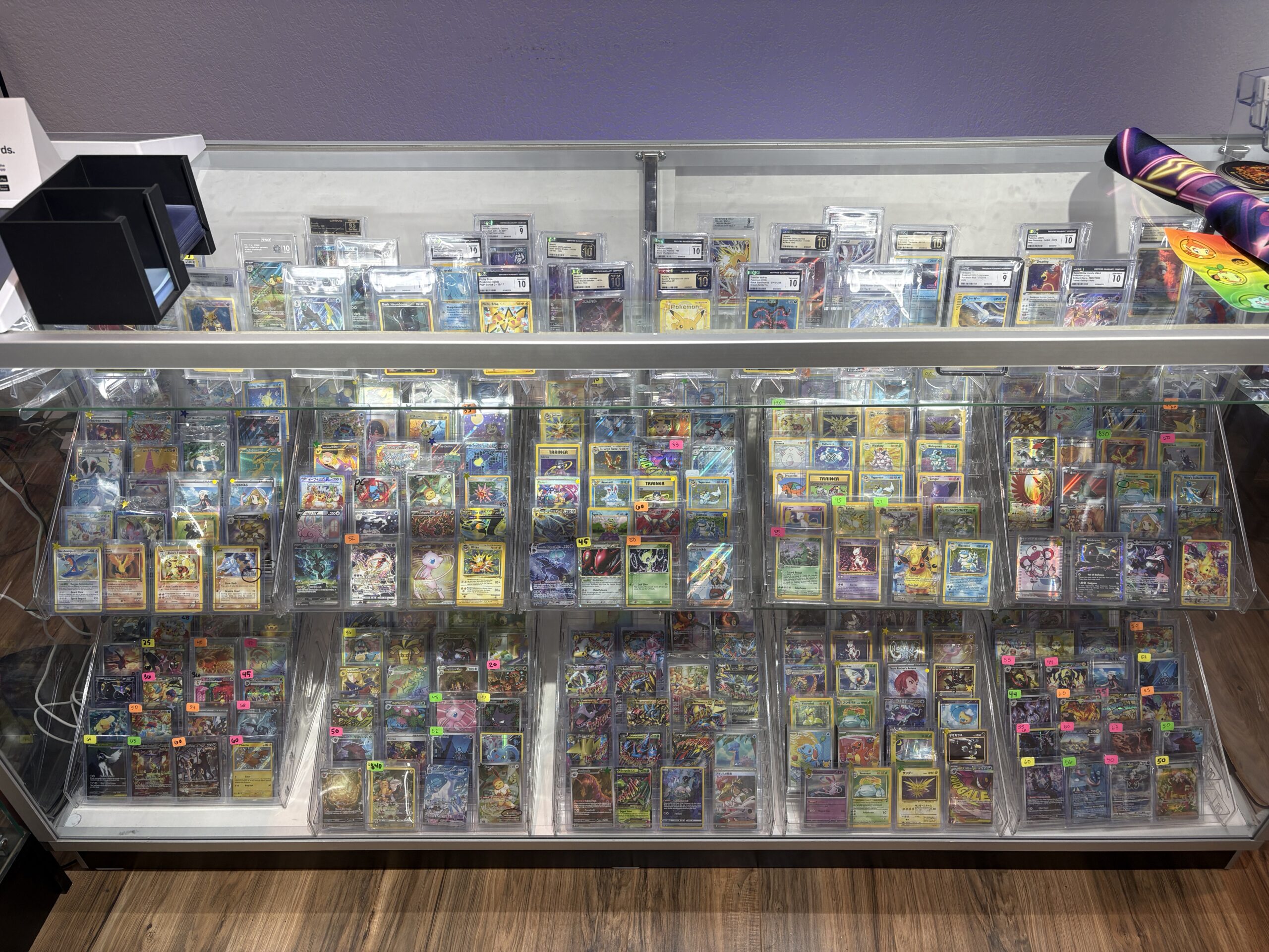 Card case exhibiting the different Pokémon cards Coastal Cards DTSP has for sale. (Photo by Jordon Pfeiffer)