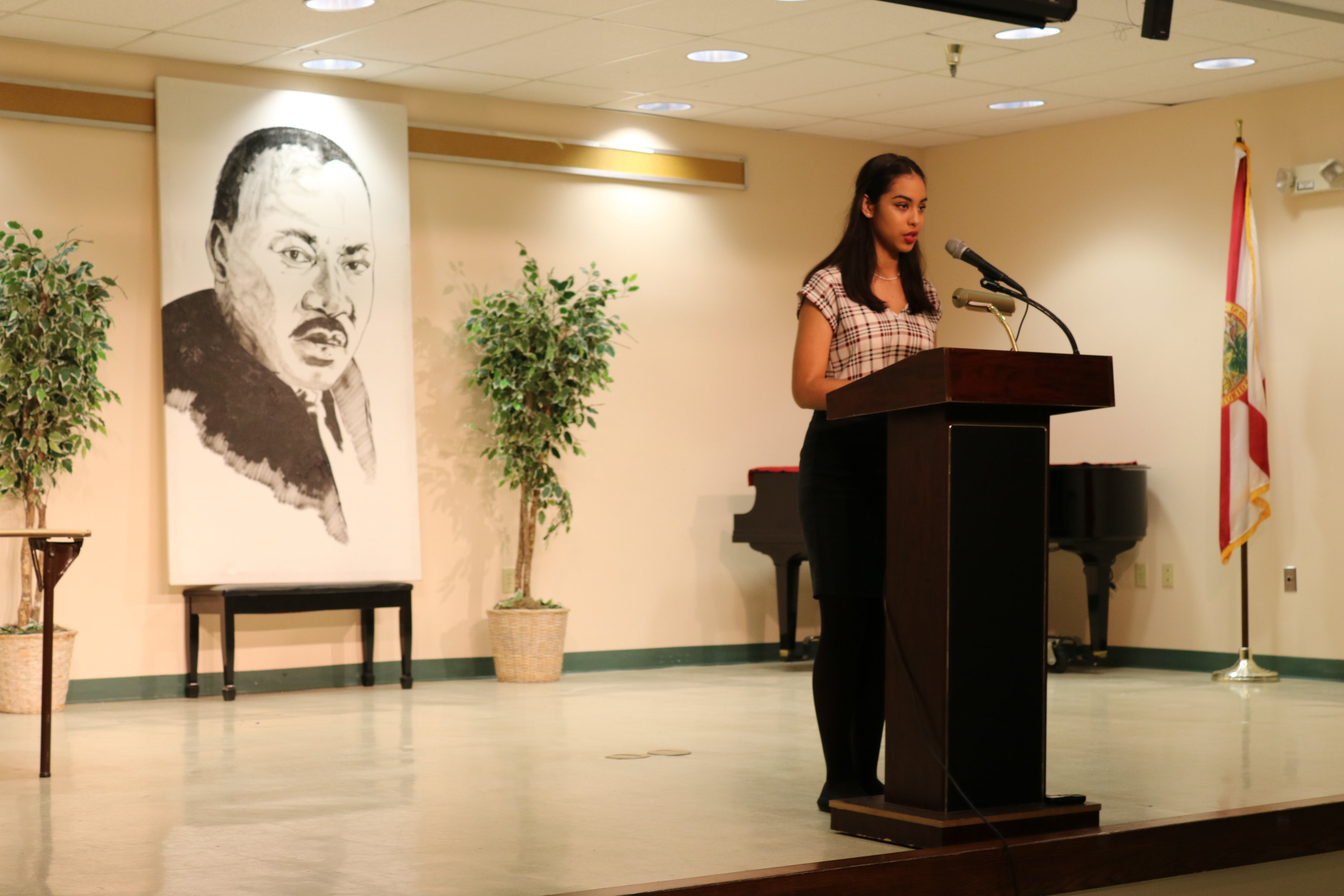 Daniela Pepe, a ninth grader from Gibbs High School, was the third student to present her essay for the MLK High School Essay Contest.