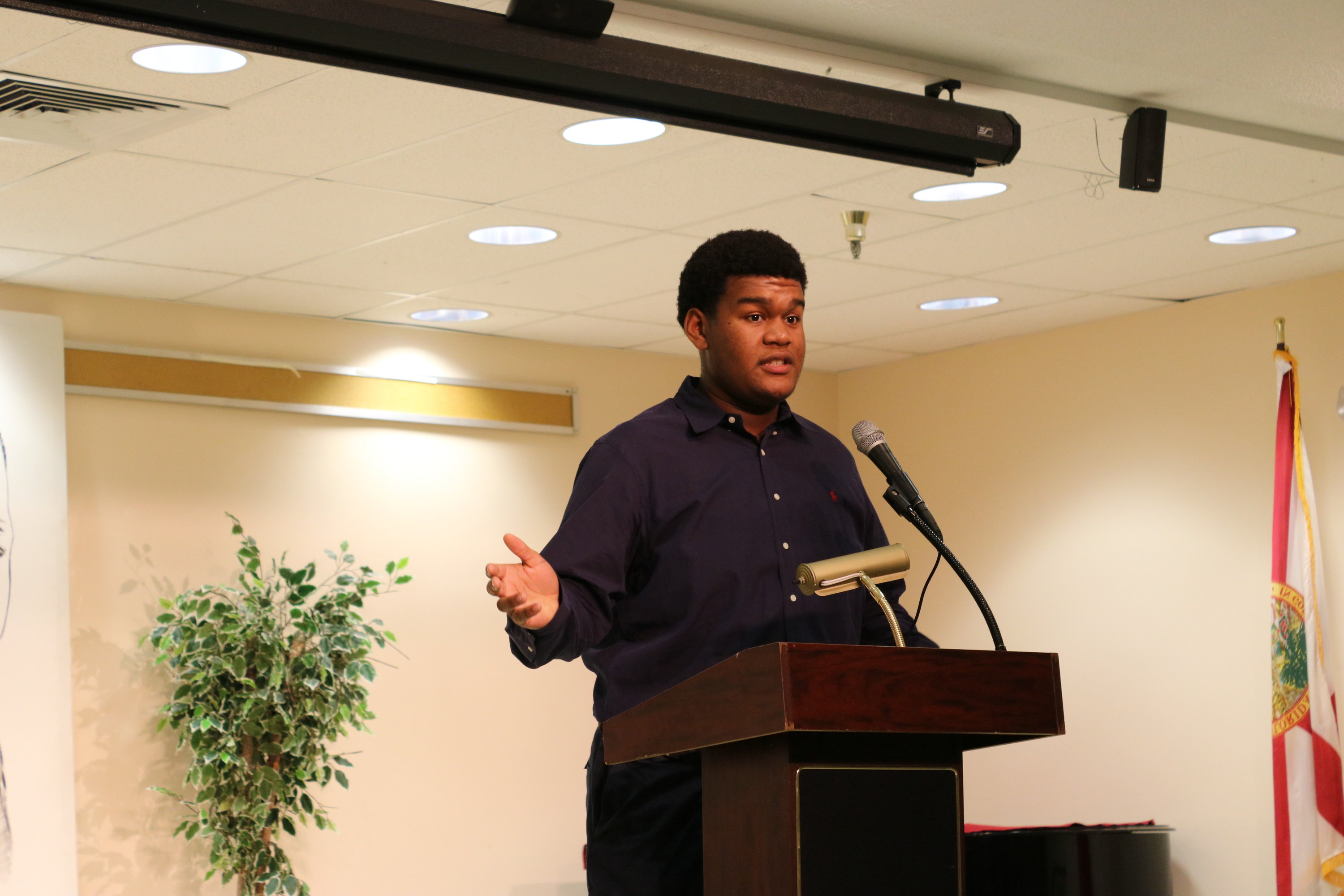 Deondrick Harper delivered his speech first. He is in 10th grade at Gibbs High School and was unsure at first.